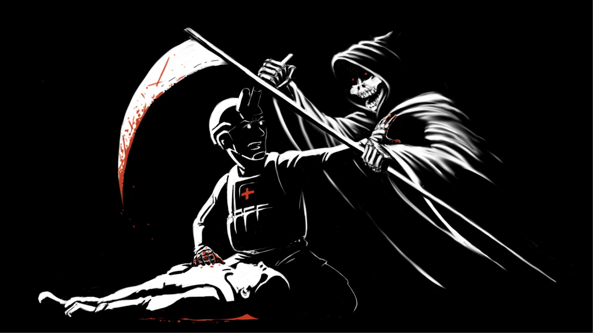 We are the front line against the Angel of Death. The 'Denying Death' image is now available in a sticker! Sticker is 4" x 2.2" with Vinyl or a Matte finish